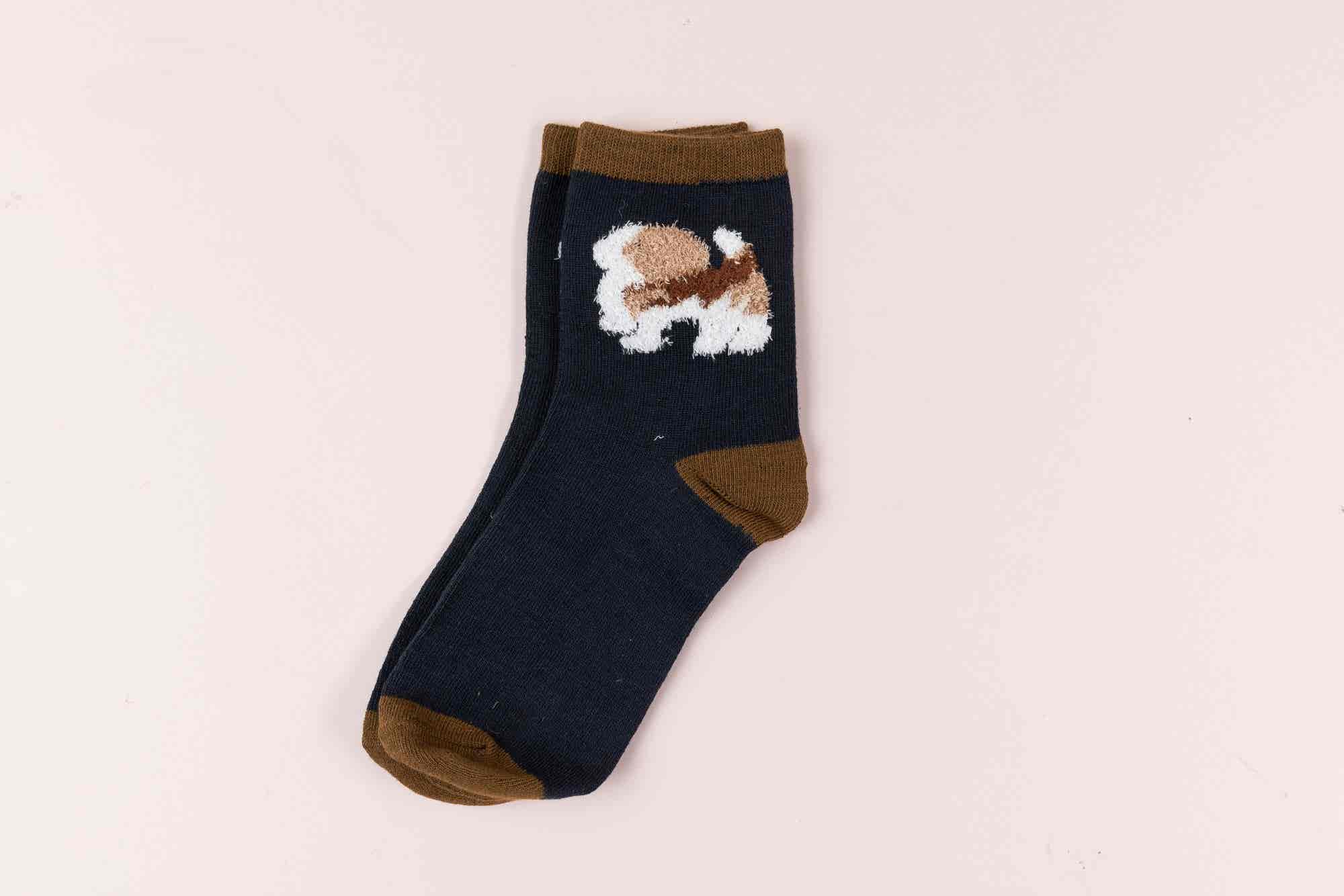 Made from soft, breathable fabric, these comfy socks are perfect for everyday wear. The playful dog design adds a touch of fun to your outfit, while the ankle-length cut makes them ideal for trainers, casual shoes, or lounging at home. Fits UK shoe size 3-5.