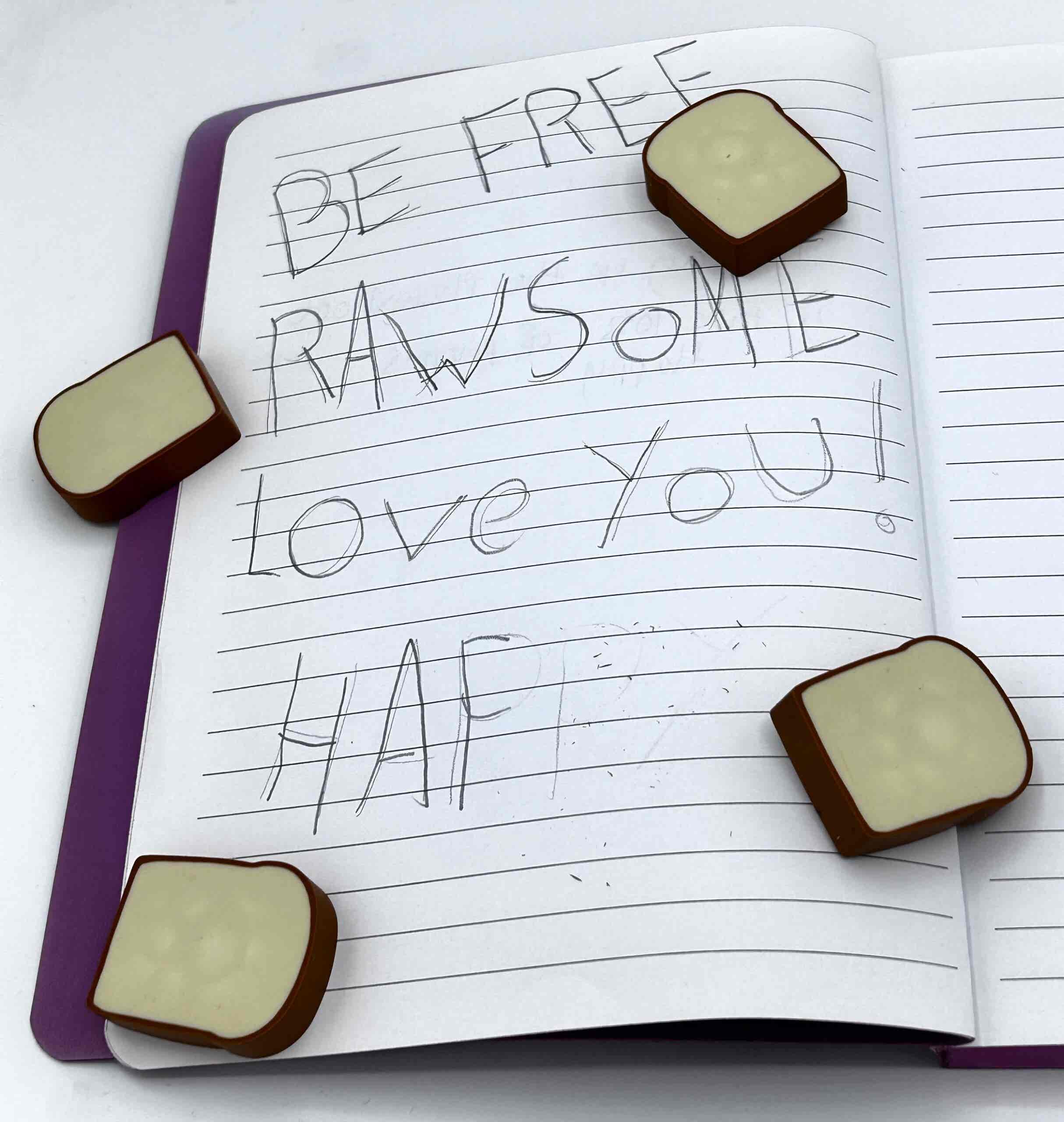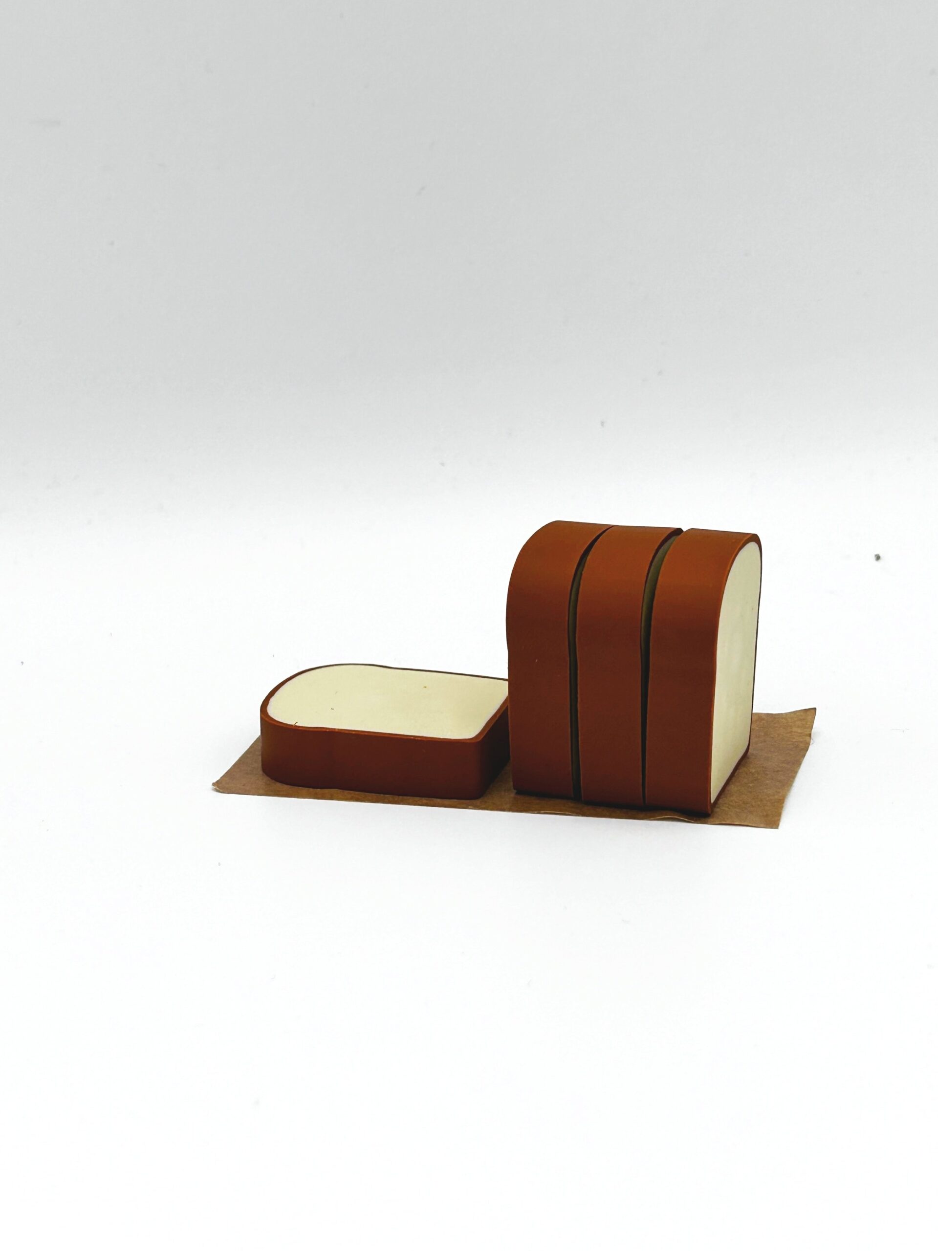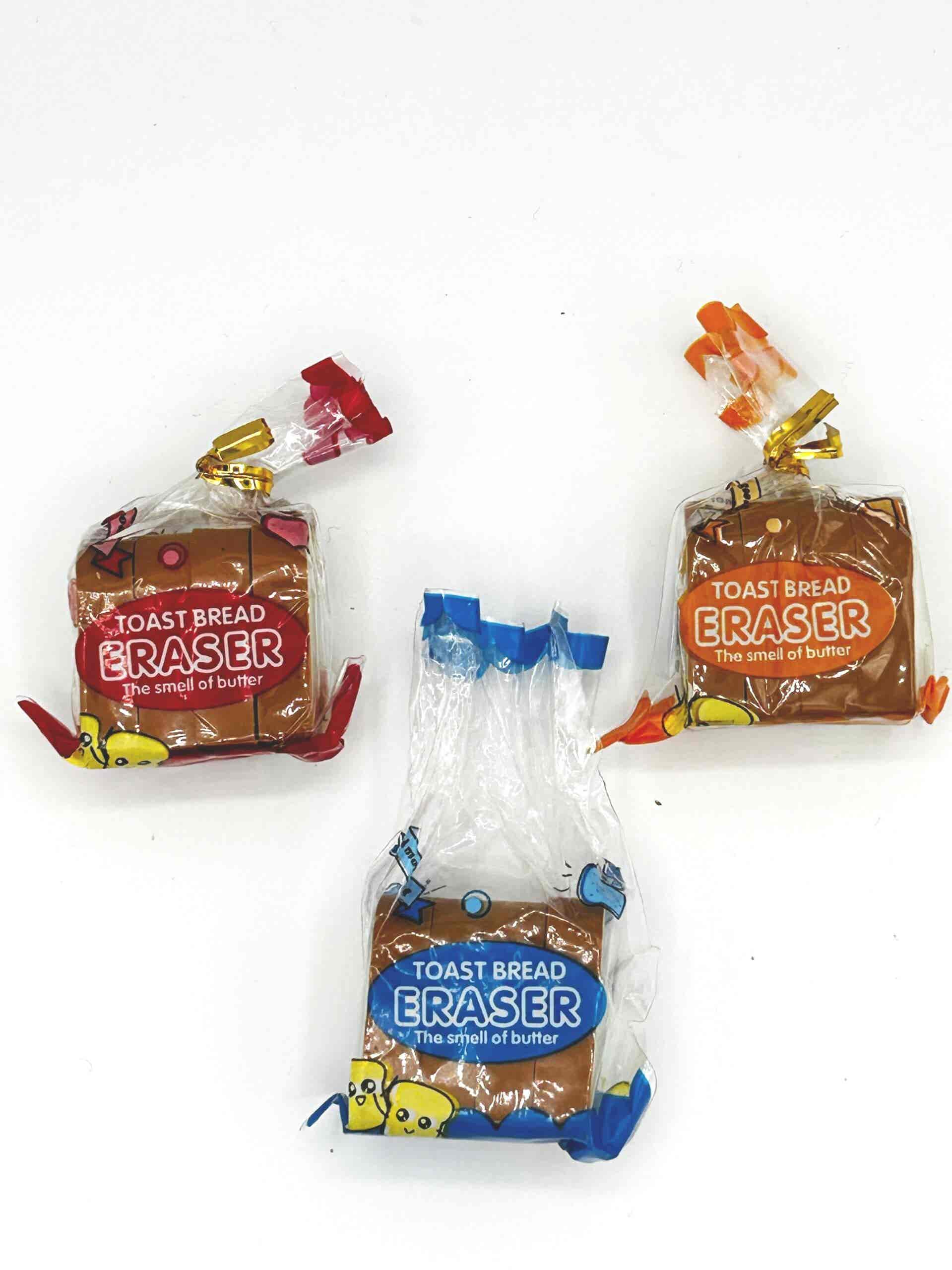These scented erasers are the best thing since sliced bread! A loaf of bread eraser/rubber. Each pack contains 4 individual rubber made to look like a slice of bread inside a bread rubber.
