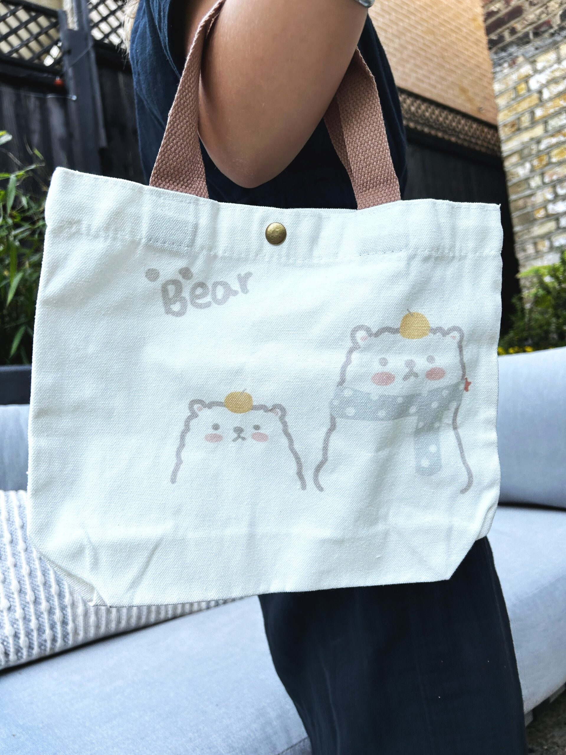 This cute cotton tote bag is perfect for your lunch or for a day out to hold your essentials. Small tote bag.