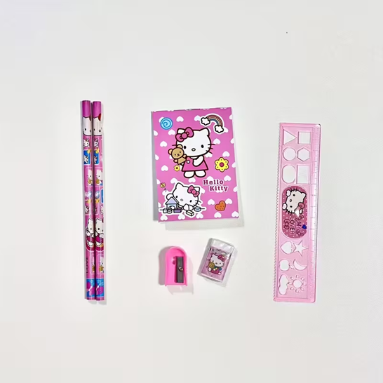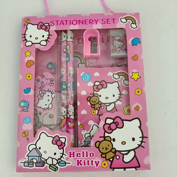 Discover the adorable Hello Kitty Stationery Set featuring a notepad, pencils, sharpener, eraser, and more. Perfect for school, gifting, or creative play. Cute pink design with Hello Kitty artwork!