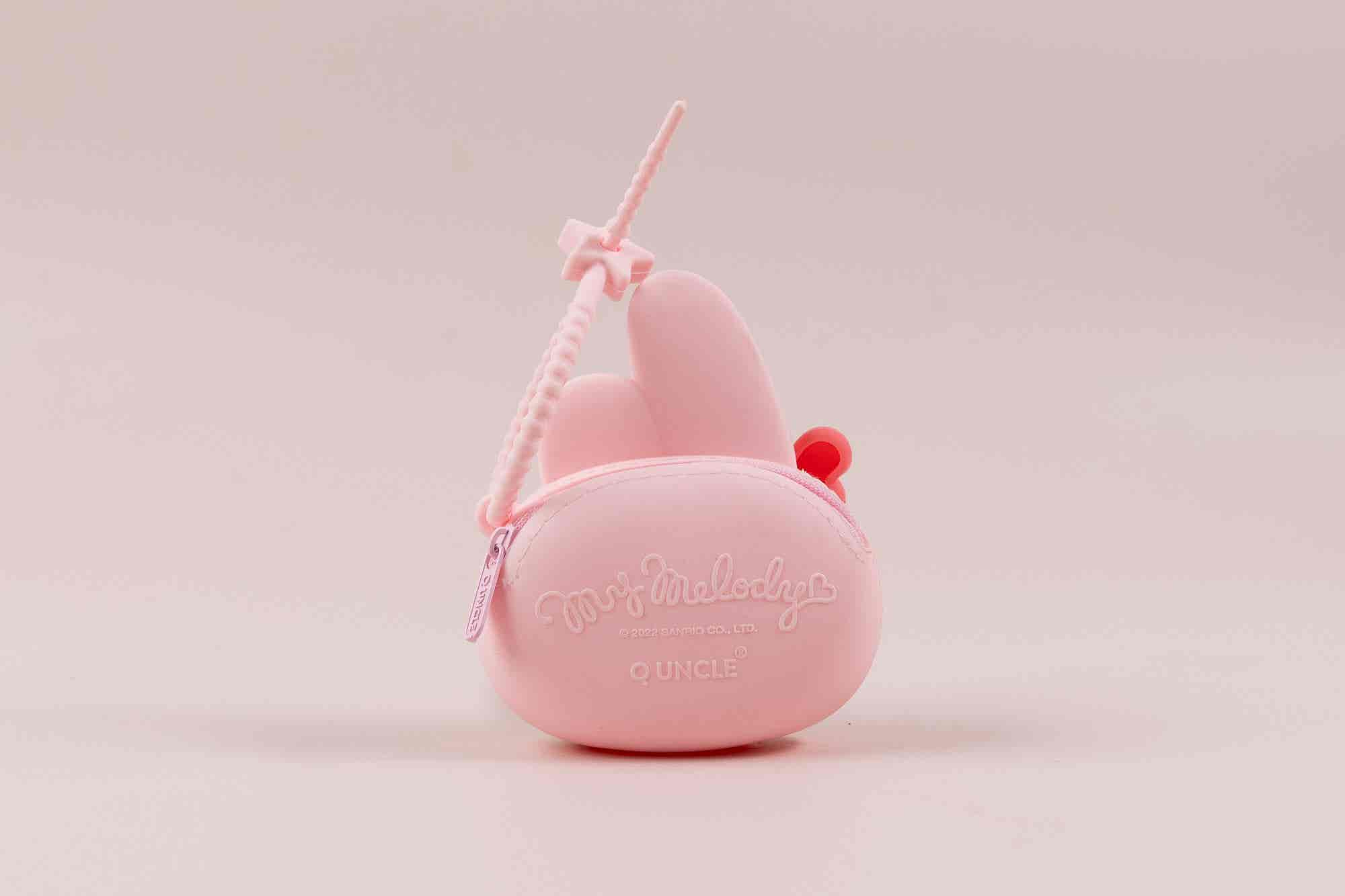 These Sanrio silicone purses are a cute attachment to bags and backpacks, and are lightweight and sturdy, so built to last. This is My Melody.