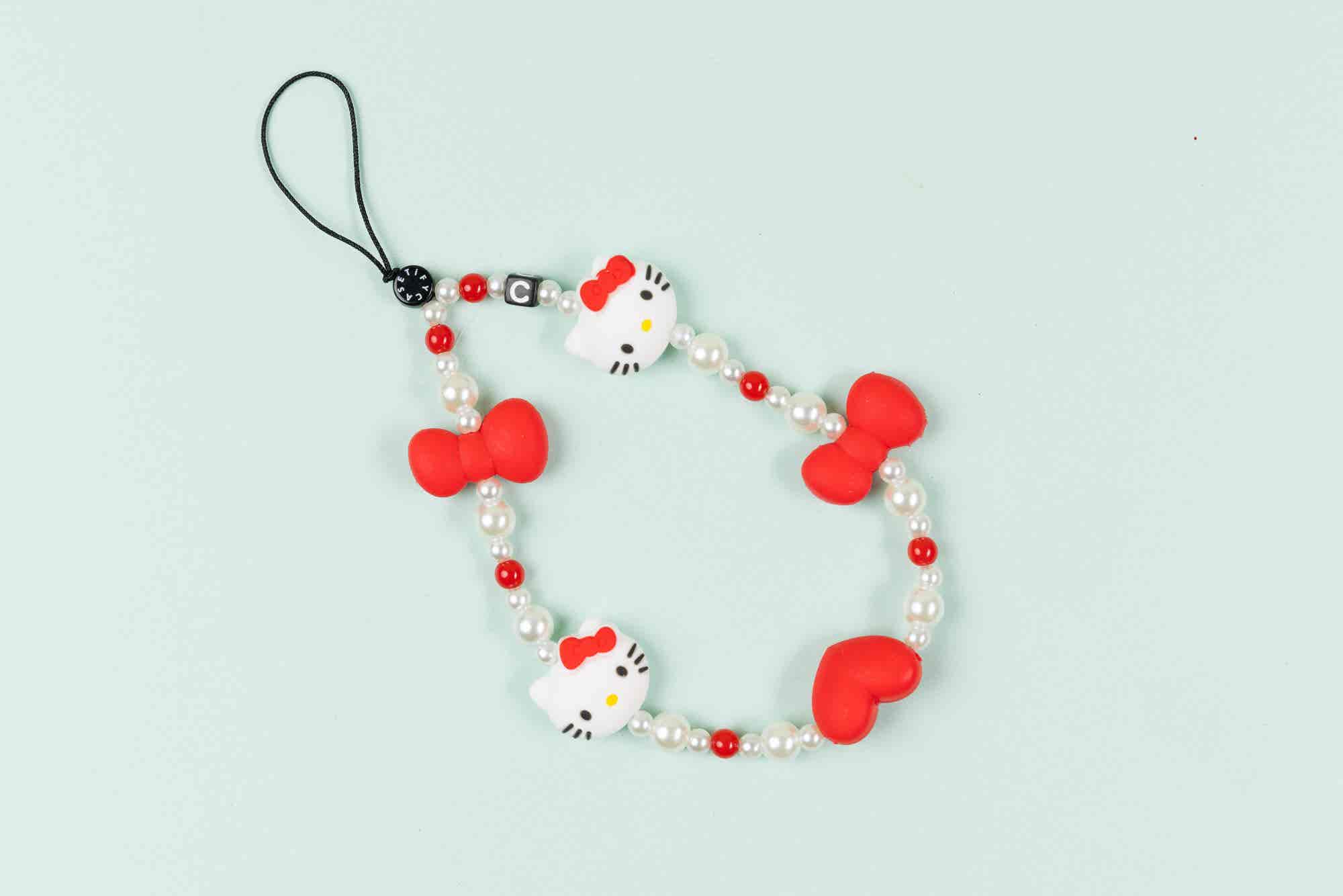 Crafted with glossy pearl-style beads, vivid red accents, and iconic Hello Kitty faces, this lanyard adds a pop of personality to any phone case. The black loop attachment fits most phones, keychains, or handheld devices, perfect for on-the-go cuties!